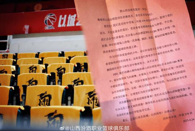 山西男籃曬高中生來信:你們永遠是三晉大地的驕傲