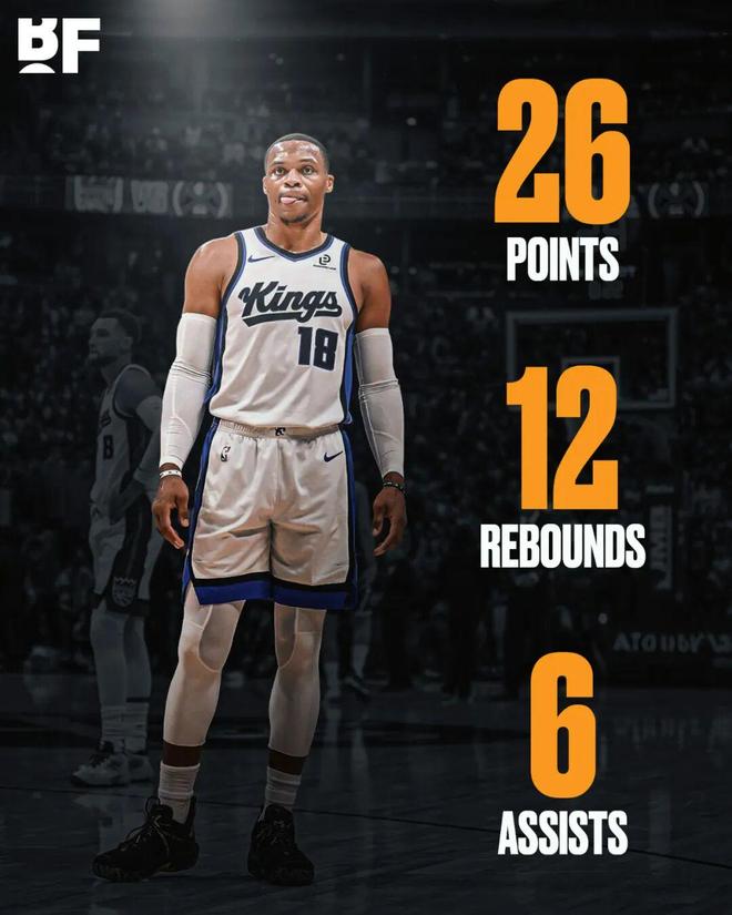 截至目前,威少全勤打了國王的7場比賽,場均可以拿到13.9分5.9籃板5.0助攻1.4搶斷,三項命中率分別是43.2%/39.4%/70.0%。