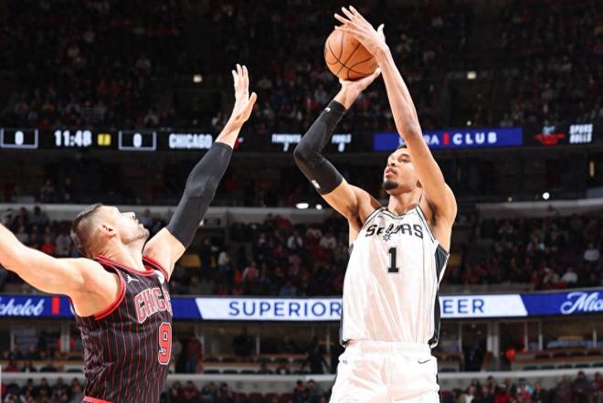 文班亞馬成為本場之星,全場19中11爆砍38分12籃板5助攻5蓋帽全能數(shù)據(jù),更是在決勝時刻連續(xù)命中大心臟三分率隊擊敗公牛拿下3連勝。